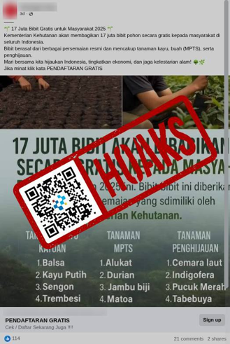 [HOAKS] Tautan Bantuan Bibit Gratis dari Kementerian Kehutanan