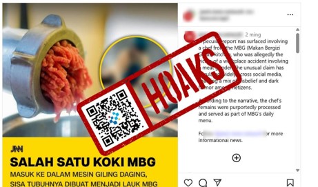 [HOAKS] Koki Masuk Ke Dalam Mesin Giling Daging, Tubuhnya Dibuat Menjadi Lauk MBG