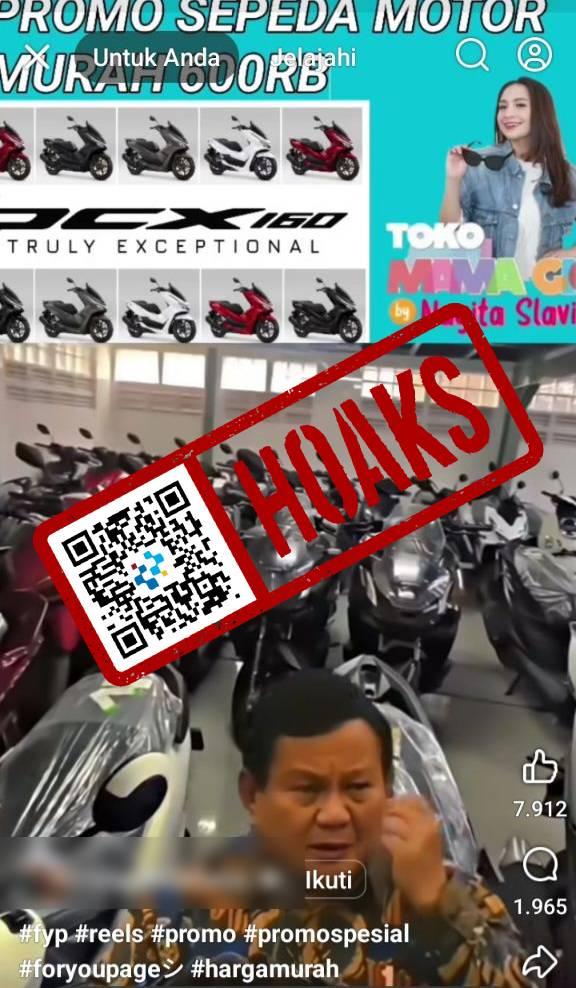 [HOAKS] Presiden Prabowo Promosikan Program Motor Murah