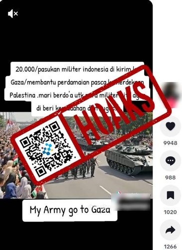 [HOAKS] Indonesia Kirim 20 Ribu Pasukan ke Gaza untuk Membantu Perdamaian Pasca Kemerdekaan Palestina