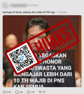 [HOAKS] Menkeu Purbaya Tegaskan 2026 Guru Negeri/Swasta Wajib PNS
