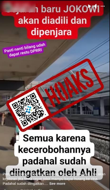 [HOAKS] Jokowi Bakal Diadili Imbas Kecerobohannya di Proyek Kereta Cepat