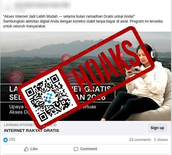[HOAKS] Tautan untuk Klaim Internet Gratis Selama Ramadan 2026